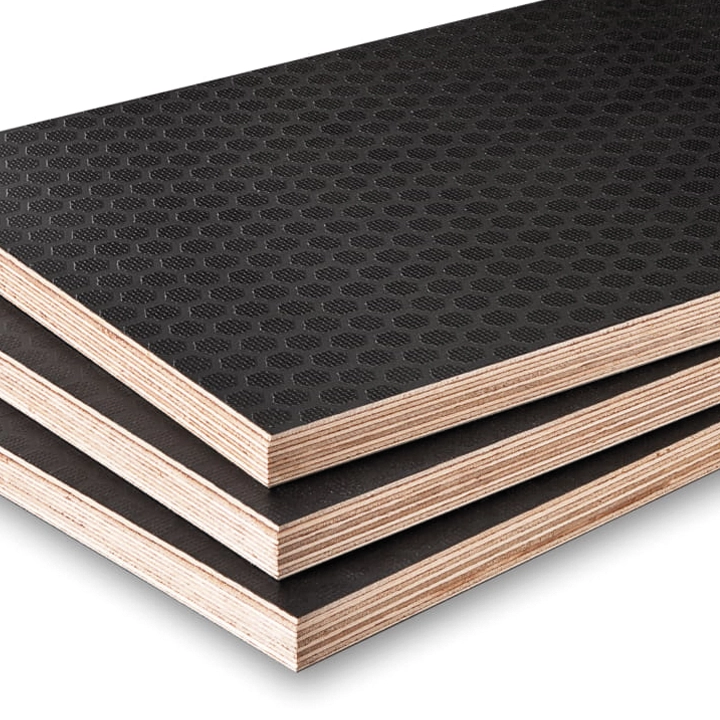 Antypoślizgowa, wodoodporna sklejka liściasta o budowie krzyżowej, pokryta filmem fenolowym z prasowanym na gorąco odciskiem typu HEXA (wzór heksagonalny, dzięki któremu deska jest antypoślizgowa i posiada ciekawy efekt wizualny). Sklejkę tę cechuje podwyższona odporność na ścieranie, uszkodzenia mechaniczne i działanie środków chemicznych tj. rozpuszczalniki, zasady i kwasy. Sklejka otrzymana przez naprasowanie na liściastą sklejkę specjalnego papieru zaimpregnowanego żywicą – zwanego potocznie filmem z odciskiem przypominającym strukturę „plastra miodu”. Otrzymany w procesie naprasowania odcisk heksoidalny tworzy powierzchnię antypoślizgową i dodatkowo uwidacznia aspekty dekoracyjne powstałej powierzchni. Odbity na powierzchni sklejki wzór pozwala na łatwe i szybkie usuwanie zanieczyszczeń z powierzchni płyty.